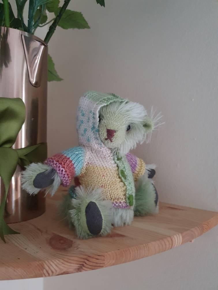 I love this little bear, the pattern was easy to follow. I'm new to bear making (this is only my 2nd bear) so I still have loads to learn, but the pattern is easy to follow. (Ps the knitted hoodie isn't part of the pattern - you get a pattern for the fabric dungarees that comes with it, I haven't made those yet)